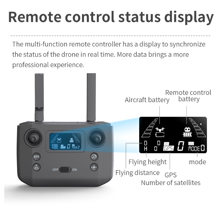 1 x RC Drone 1 x Remote Controller 1 x USB Charging Cable 4 x Spare Propellers 1 x Gimbal Cover 1 x User Manual 8 x Screws 1 x Screwdriver